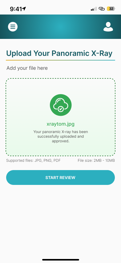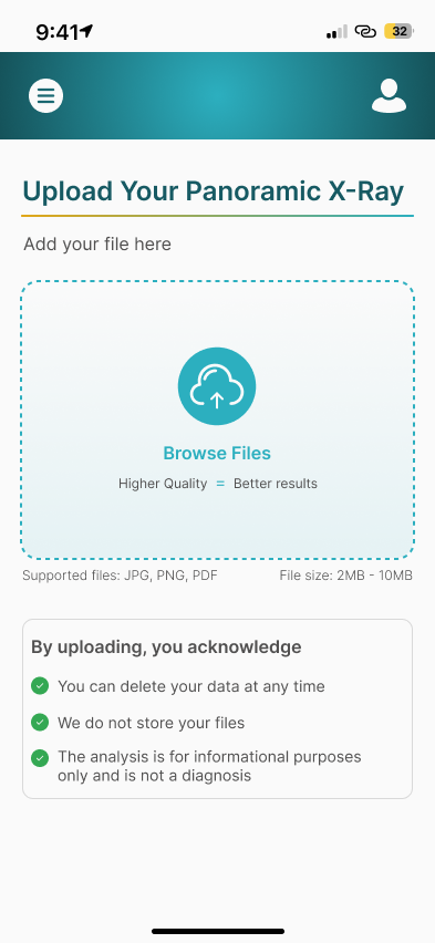 ● A layout that puts the X-ray front and center, always paired with plain-language explanations and actionable next steps