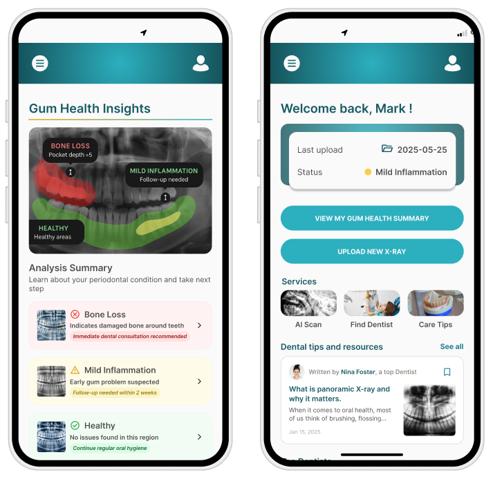 Perio.AI’s gum health summary is more than a feature. It’s a bridge between diagnosis and understanding, between technology and humanity. Whether it’s Emily checking her report on the train, or John sharing it with his daughter over dinner — the goal was always the same: Help people feel more informed, more in control, and more cared for.