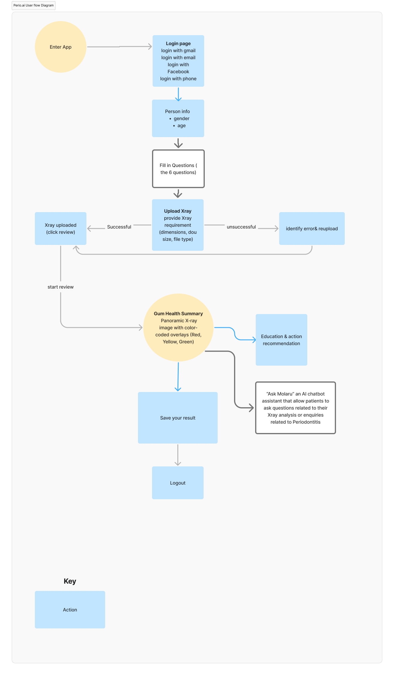 Perio.AI is an AI-powered web app that helps patients better understand their gum health through clear visual summaries and educational support. This project was completed as part of my internship at the PM Accelerator, where I was tasked with designing an end-to-end experience. From onboarding and image upload to AI-powered diagnostics, education, and follow-up.